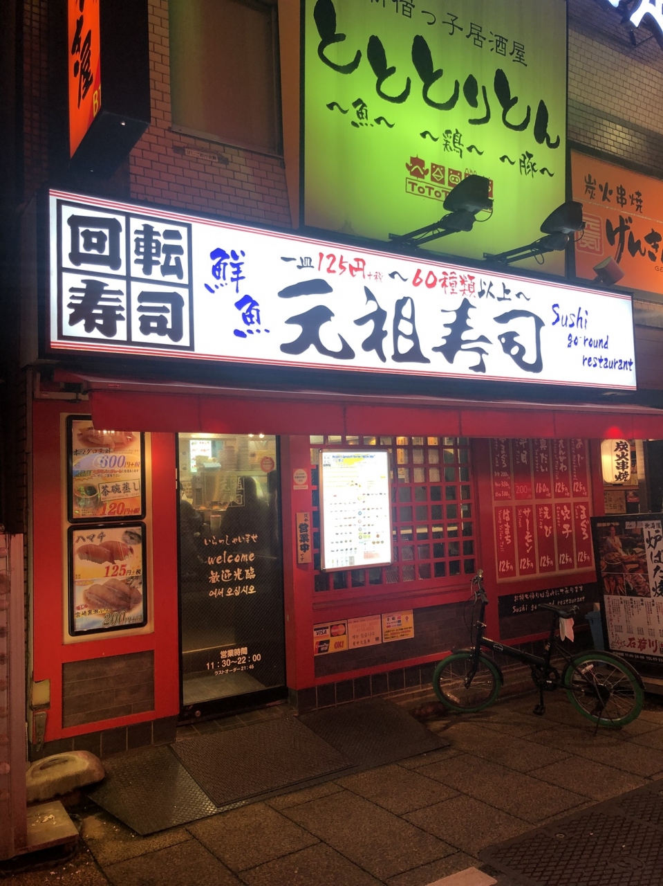 ネタが豊富でどれも格安でいただけます。ちなみにこちらは回転。でもファミリタイプではなくお寿司屋さん然としていて、寿司を食べに来た実感が持てる印象でした。店内はカウンターのみ。値段のわりにネタの大きさはまずまずで、味も良かったです。外人さんの姿もあって、旅行で来たのかなといった雰囲気。でも適当に皿を取っていて、楽しそうでした。