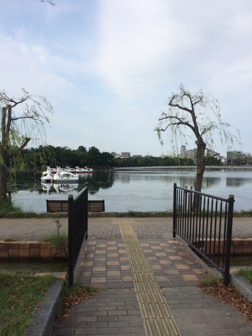 天神駅から大濠公園駅まで地下鉄で移動して、そこから徒歩で行きました。公園の敷地があまりにも広くてびっくりしました。地図を見ても、池の広さが圧倒的に大きいです。こんなに都会に広々した公園があって、自然や美術館が整い、良かったです。