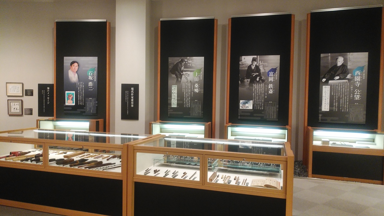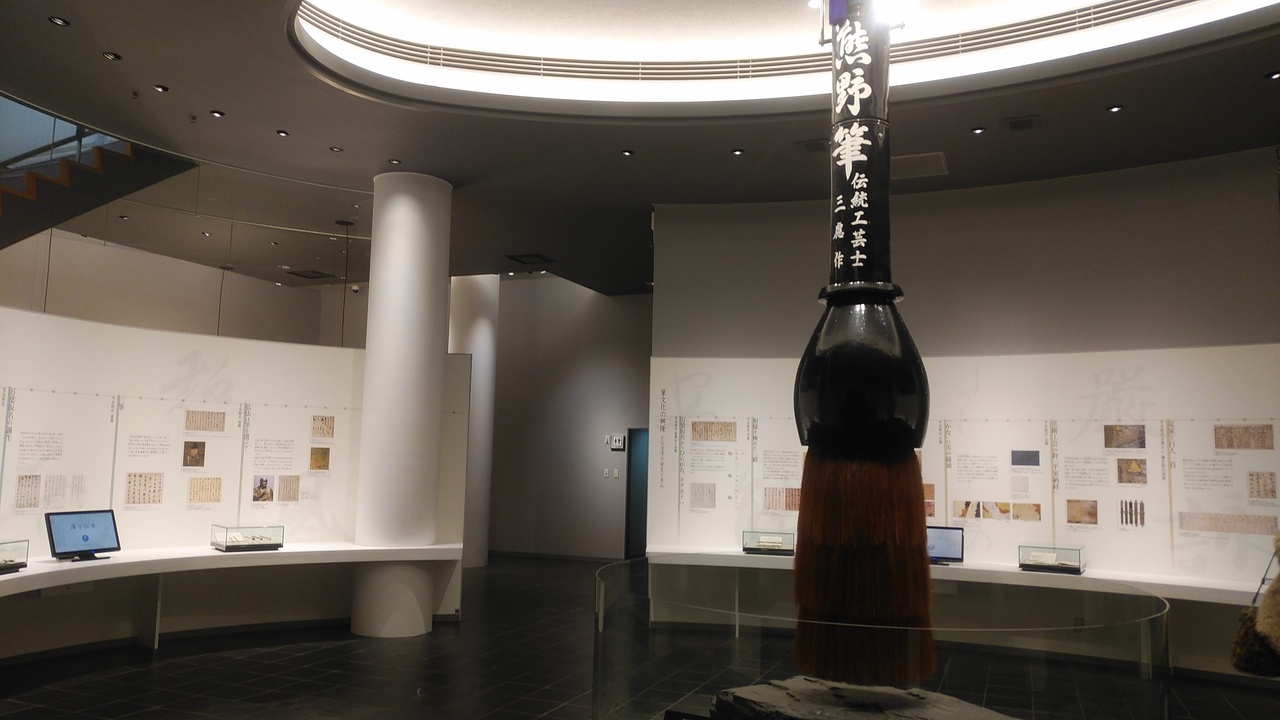 今日は孫が入選した【ちょっと大きな絵手紙大賞】の優秀作品展を見に行きました。入場料を払って地下に行くと、6才から14才迄の作品が展示されていて、6才の孫の作品を含めて見て回りました。他にも、大きな筆や大村陽山コレクションの筆や、伝統工芸士の館、筆づくり工房、筆づくり体験や筆・墨・硯・紙の展示や石坂浩二の品等の展示があら楽しめました。
