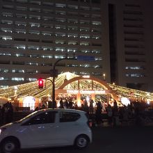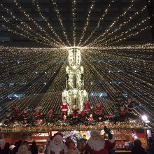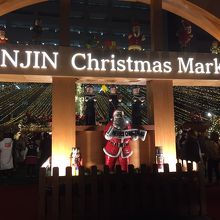 入口にサンタが沢山いて皆さん写真撮影しています、会場がコンパクトなのでお店も見やすく、駅前と比べると子供連れの方が多かったですし、皆さんお酒やお料理(ソーセージが美味しかった)と楽しんでいました。