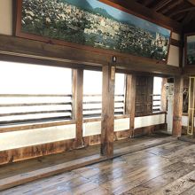 内部は、当時の様子が描かれた絵や鎧、書、太鼓などが展示されていました。