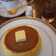 スフレケーキ程ふんわりしてはいないが、ふかふかで、これぞホットケーキ、といった感じ。シロップがあるので、ホットケーキ自体の甘さは控えめ。