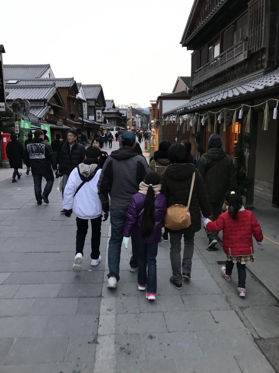 さて、7時ごろ、参拝へ繰り出します。おかげ横丁開いている店はほとんどありません。