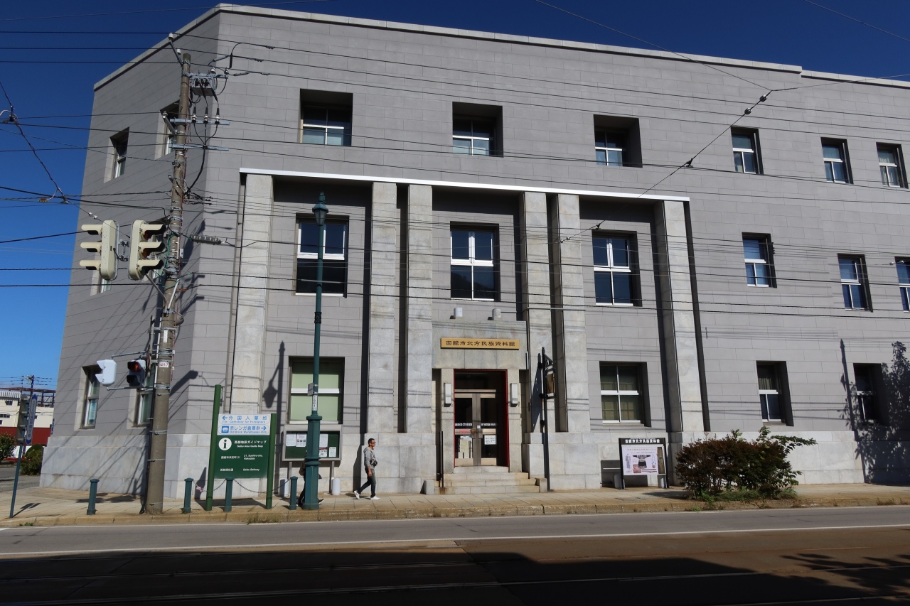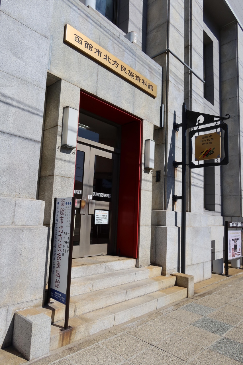 函館の基坂を下った市電が走る交差点の北東角に角ばった建物が函館市北方民族資料館です。地上3階建ての建物は大正15年に旧日本銀行函館支店として建てられた物です。鉄筋コンクリート造の石貼り外壁の外観は如何にも銀行と言った感じです。資料館ではアイヌ民族等の北方民族の貴重な資料が展示されていました。共通券がお得です。