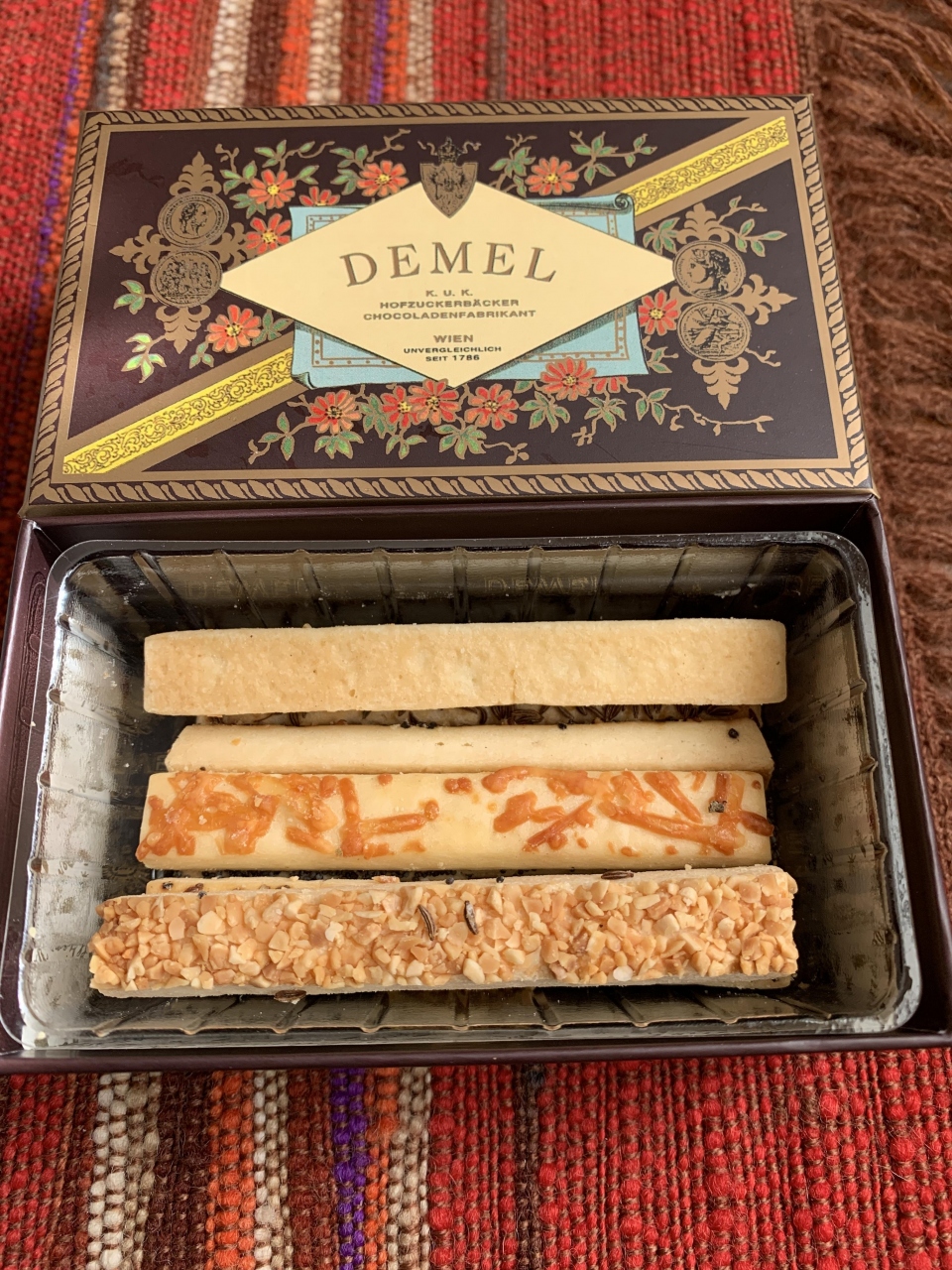 帰りに地下のスイーツコーナーでデメルのソリッドチョコレートを買おうと思い向かいましたが、美味しそうなスティックの焼き菓子がありましたので今日はこちらを購入。