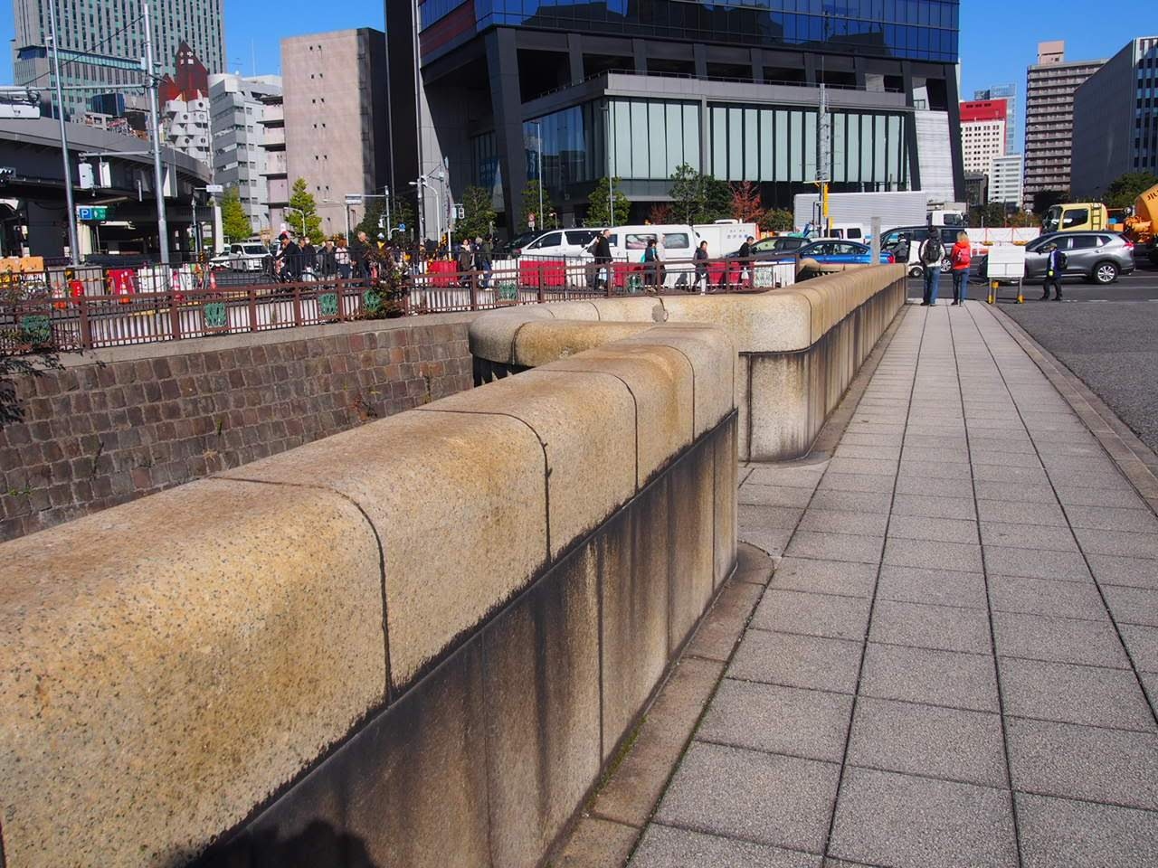 新橋方面から浜離宮恩賜庭園を目指すと渡ることになる石造りの見事な橋。手前の信号待ちが長く、待っている間に橋を眺めていると橋の向こうに待っているのは江戸時代なんじゃないかという不思議な錯覚に襲われます。周辺を整備すればもっと良い景色になるのにと思わざるを得ません。