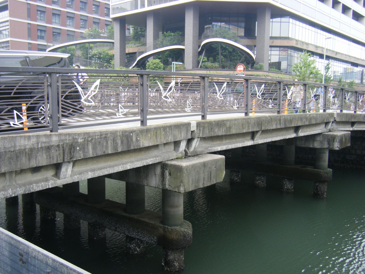 2019年7月に横浜駅周辺~みなとみらい地区にかけて散策した際に立ち寄りました。横浜ビブレとハマボール イアスの間にある新田間川に架かる橋となります。車も1車線のみ(一方通行)で、それほど大きな橋ではなく、特に観光名所というわけではないかと思います。横から見ると橋げたのコンクリート部分はかなり老朽化が進んでおり、いつまで利用されているのか若干不安になってしまいますね。見るからに古い橋なので、そういった橋が好きな人にはたまらないのかもしれませんが。