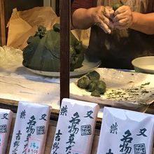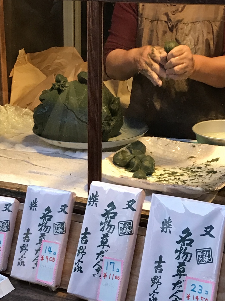 柴又の帝釈天参道にある草団子屋さん。柴又駅から5分、帝釈天から2分くらい。いつも並んでいる。よもぎが濃いのが特徴です!私はインパクトがあって大好き!(ちなみに伯父は高木屋さん派です)おばちゃんが休む間もなく、よもぎ餅をお団子に丸めています。箱入りはお団子の上にシートをしてその上にあんこ。今回はちょっとあんこが少なかったかな。作りたてのあったかいお団子を買うことが出来ます。今回はお正月だったので少数サイズが売り切れていたけど4個入りくらいもあります。