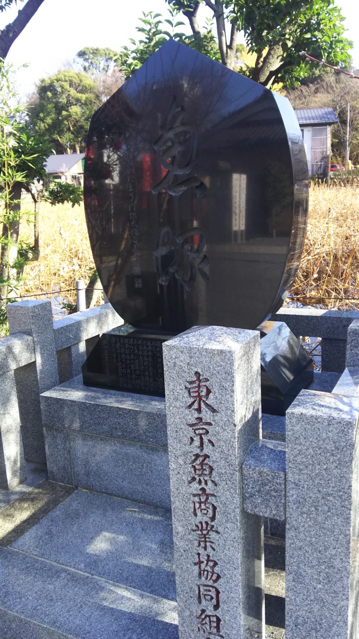 「東京魚商業協同組合」によって建立された石碑です。水揚げされる水産資源に感謝し慎んで魚の霊を悼み建てたものと書かれていました。