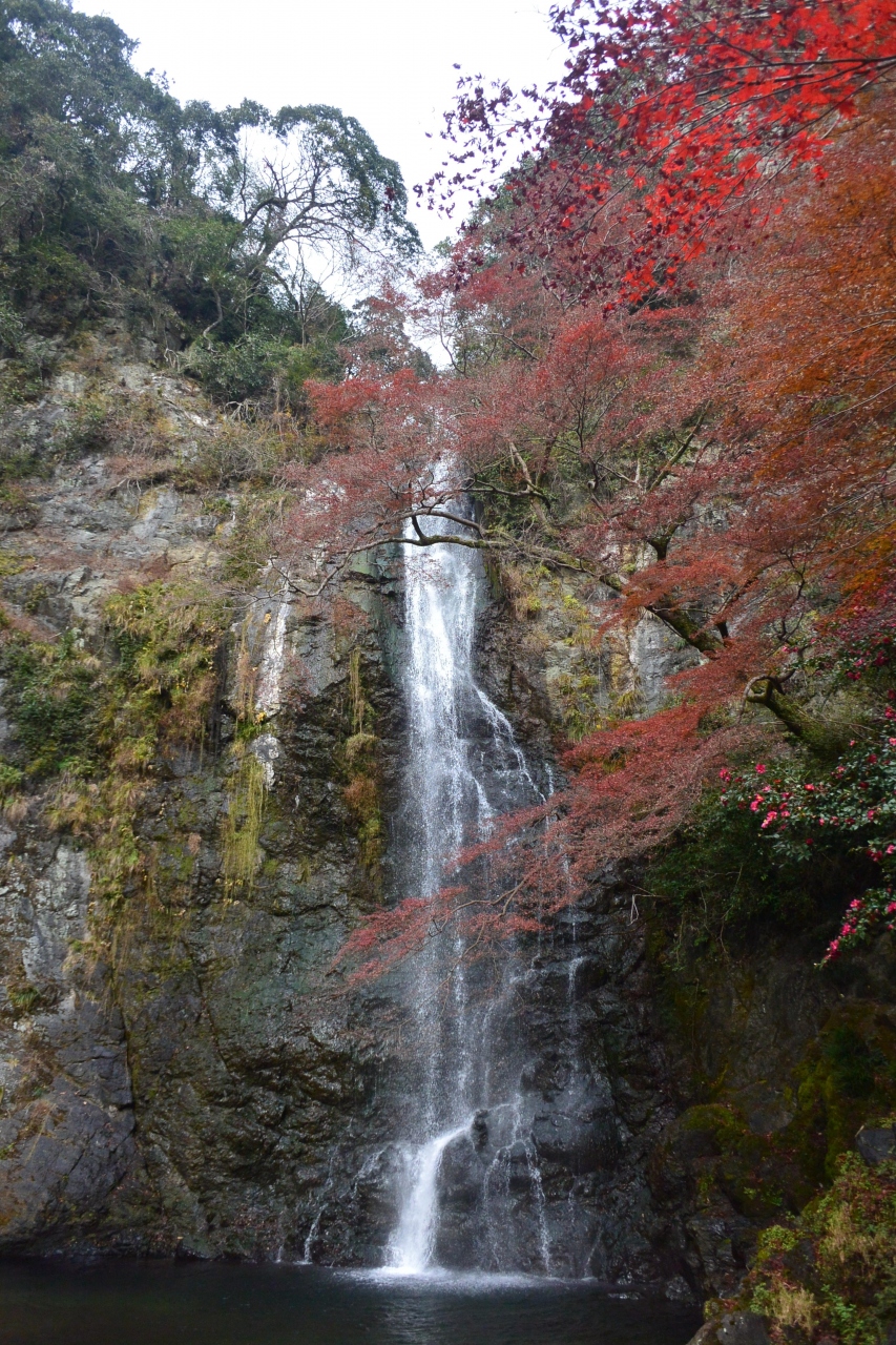 12月でしたが、まだ紅葉も残っていてきれいな光景を見ることができました。平日でも観光客は結構多く、外国人観光客も多数見かけました。大阪の街中からすぐのところでこのような大きな滝を見れるというのは貴重ですね。箕面駅からは2キロあまりで歩くのにちょうどいい距離です。