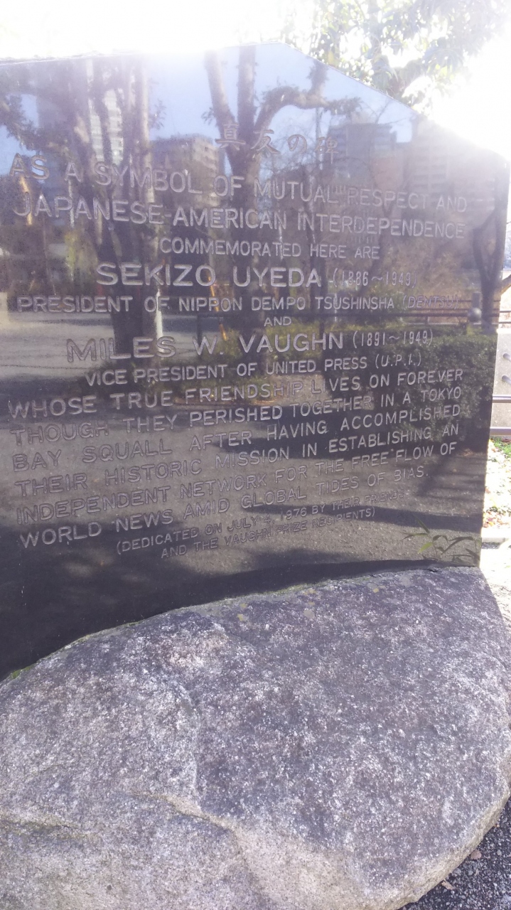 唯一英語で刻まれている石碑で、ジャーナリストの日本人と外国人(友人同士)が浦安沖の突風にて事故死したことが刻まれていました。