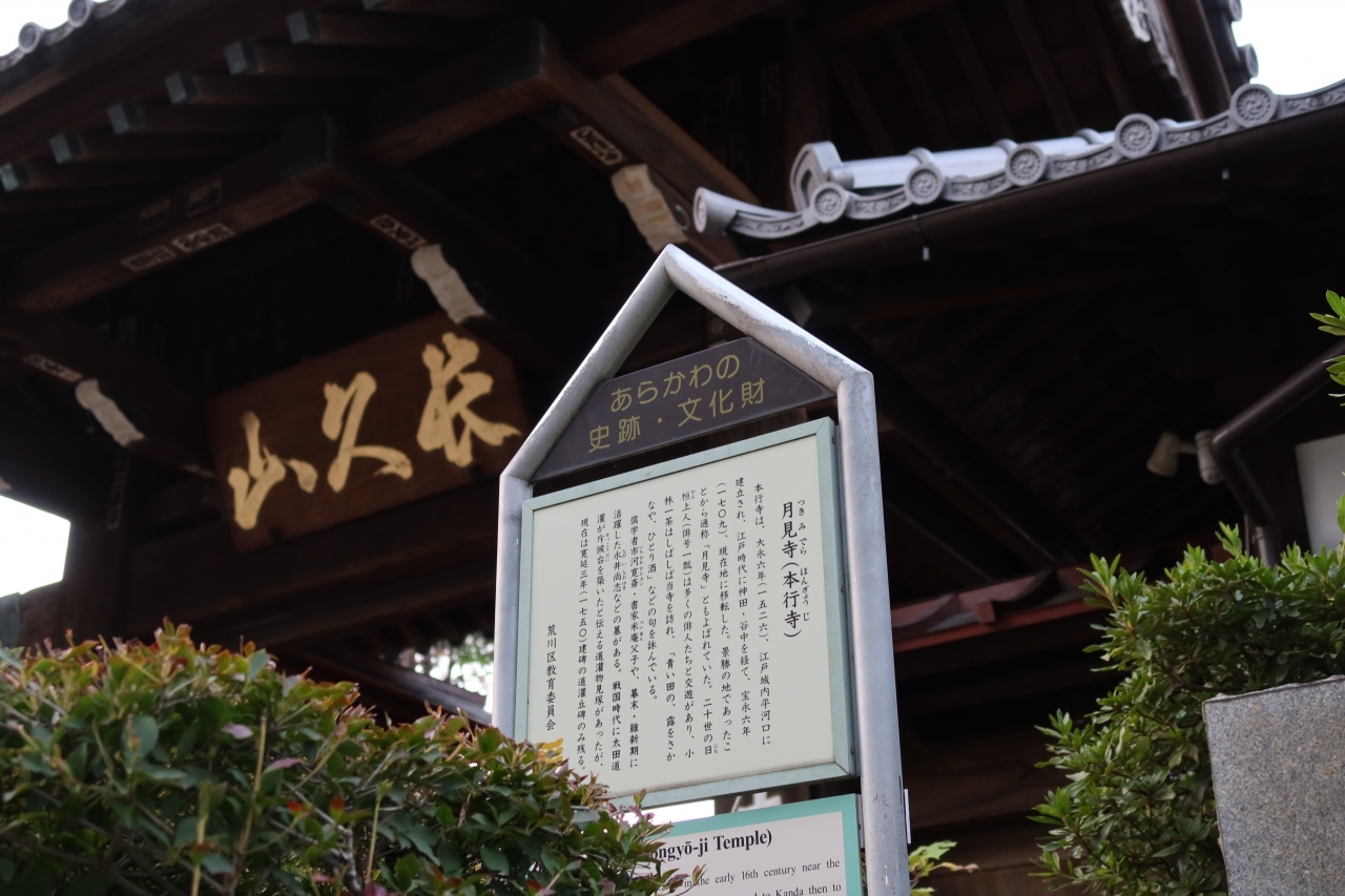 JR日暮里駅から御殿坂を上った右手にあるお寺が本行寺です。1526年創建の寺で、現在地に移転したのは江戸時代の1709年。月見寺とも呼ばれ、江戸城を築いた太田道灌の菩提寺でもあります。境内には太田道灌の業績を記した道灌丘碑があるくらいで他に見るものは余りありません。
