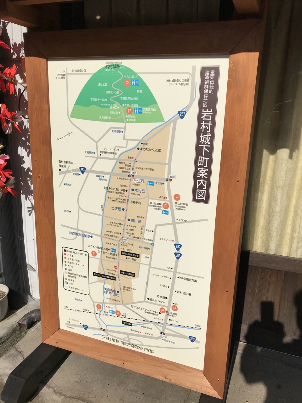 国の重要伝統的建造物群保存地区に選定された江戸時代の町並みが残る、岩村城跡の山並みを眺めながら岩村城跡へ続く緩やか坂を登る道なりは、あちらこちらに目が行き、足が止まる、興味が湧く通りだった。
