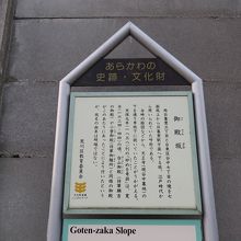 JR日暮里駅の跨線橋(下御隠殿橋)から夕やけだんだんや七面坂に抜ける道にある短い坂が御殿坂です。坂の両側には桜の木が植えられ花の時期は谷中霊園と同じ様に綺麗だと思われます。坂としてはそれ以外魅力はありません。