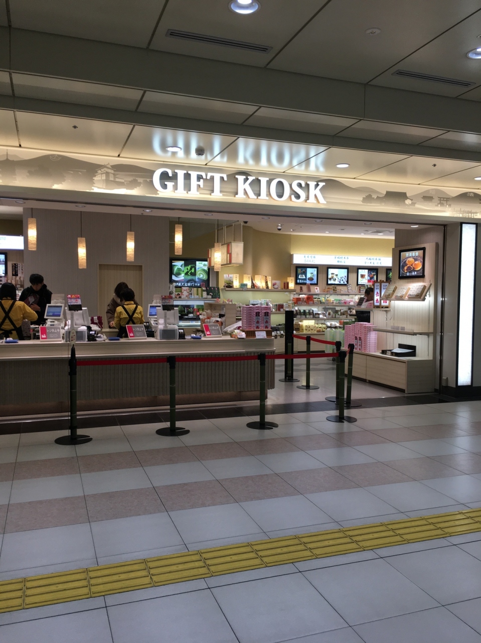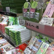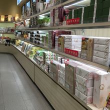 おもてなし小路の通路沿いにある大型店です。レジも通路に向いていました。通路沿いに沿っているので細長い店内です。八つ橋の種類がたくさんありました。京都限定の土産も置いてあり、商品を包む紙のデザインが京都らしかったです。
