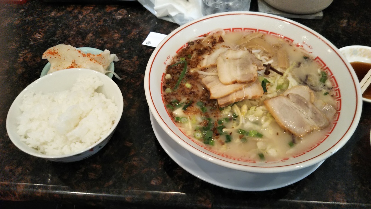 鹿児島ラーメンらしく、豚骨にキャベツが入っていて、まろやかで美味しいです。