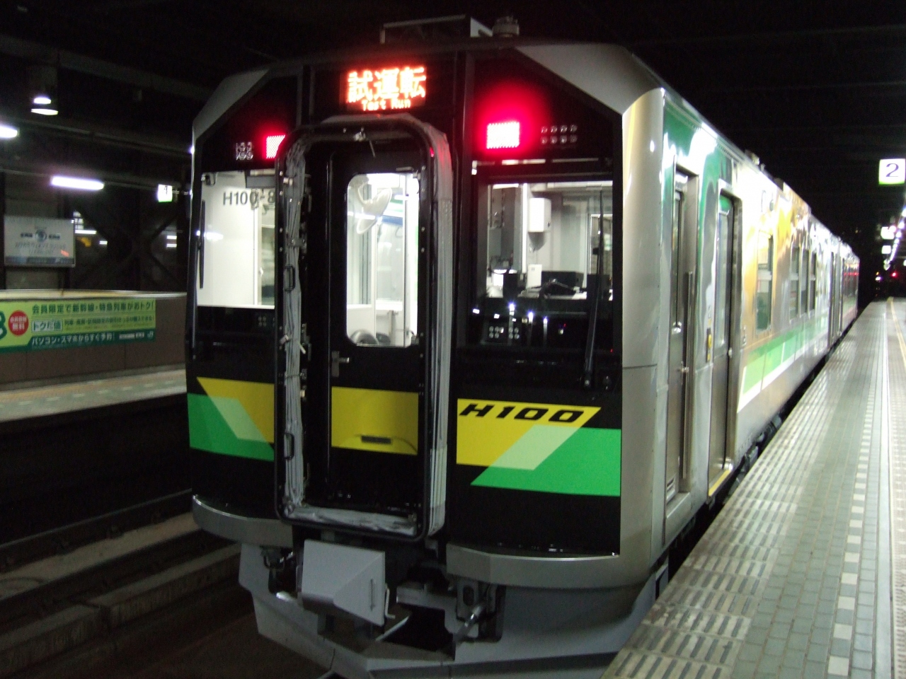 11月下旬の平日夜、桑園で友人と飲んだ後にホームへ上がろうとすると、なんだか聞きなれない音がしてきます。階段を上がってみると、なんと小樽から先で試運転をしている新型ディーゼルカーが回送で停まっていました。車内も明るい感じで音も静かな気がしました。