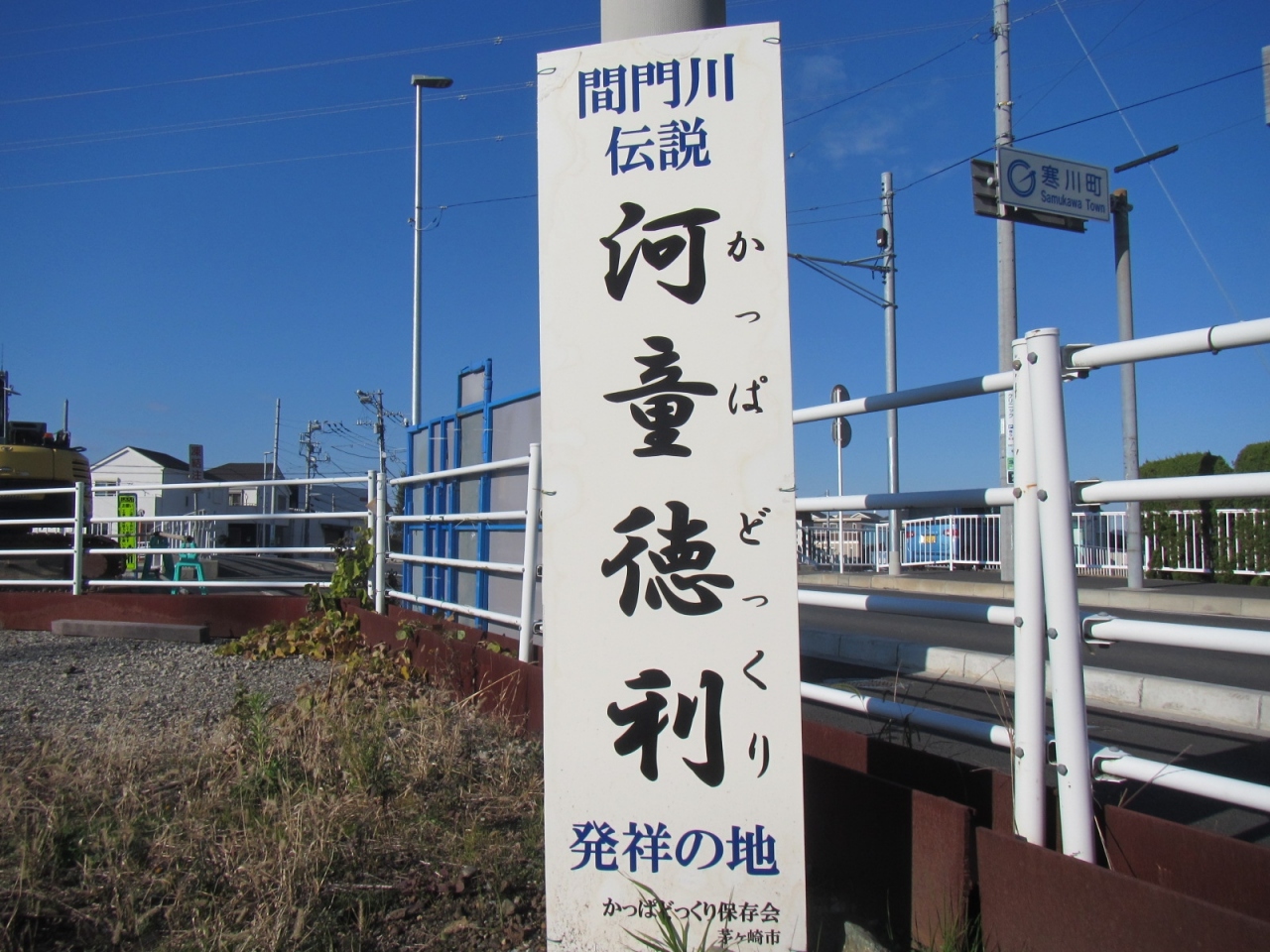 ちょうど県道45号線の大曲橋のところに、「河童徳利」の標柱が立っているので分かりますが、小さな標柱で道路上からも外れているため、特に車内からでは果たして気づく人がいるかいるかどうか分かりません。