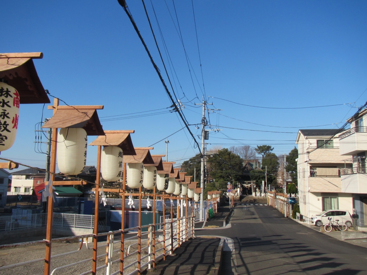神社の門前にいっぱい子供たちが描いた絵灯篭が飾ってあったり、参道にいっぱい行灯が並んでいたりして、夜暗くなって訪れるときれいだと思います。