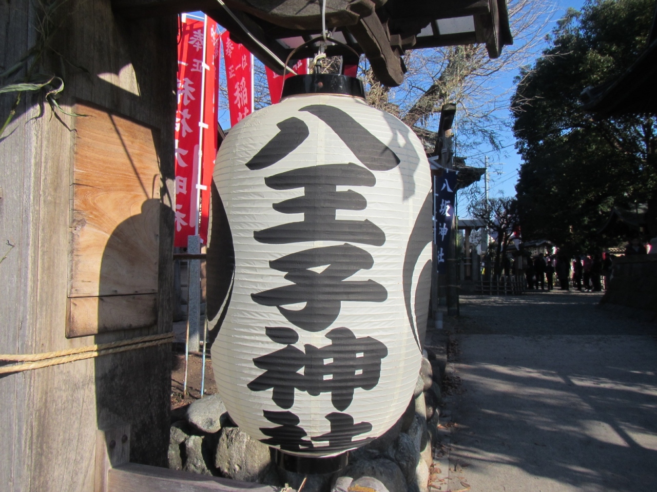 お正月は暗くなると門前の行灯が情緒ある