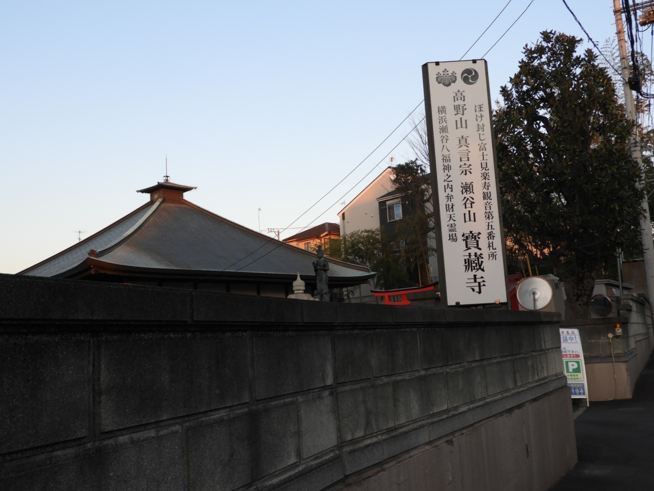 この寳蔵寺は、瀬谷5丁目の厚木街道に面しており、大きな看板が立っているのですぐに分かります。その看板には、山号・寺号の右側には“ぼけ封じ富士見楽寿漢音第5番札所”、左側には“横浜瀬谷八福神之内弁財天霊場”と 書かれていました。