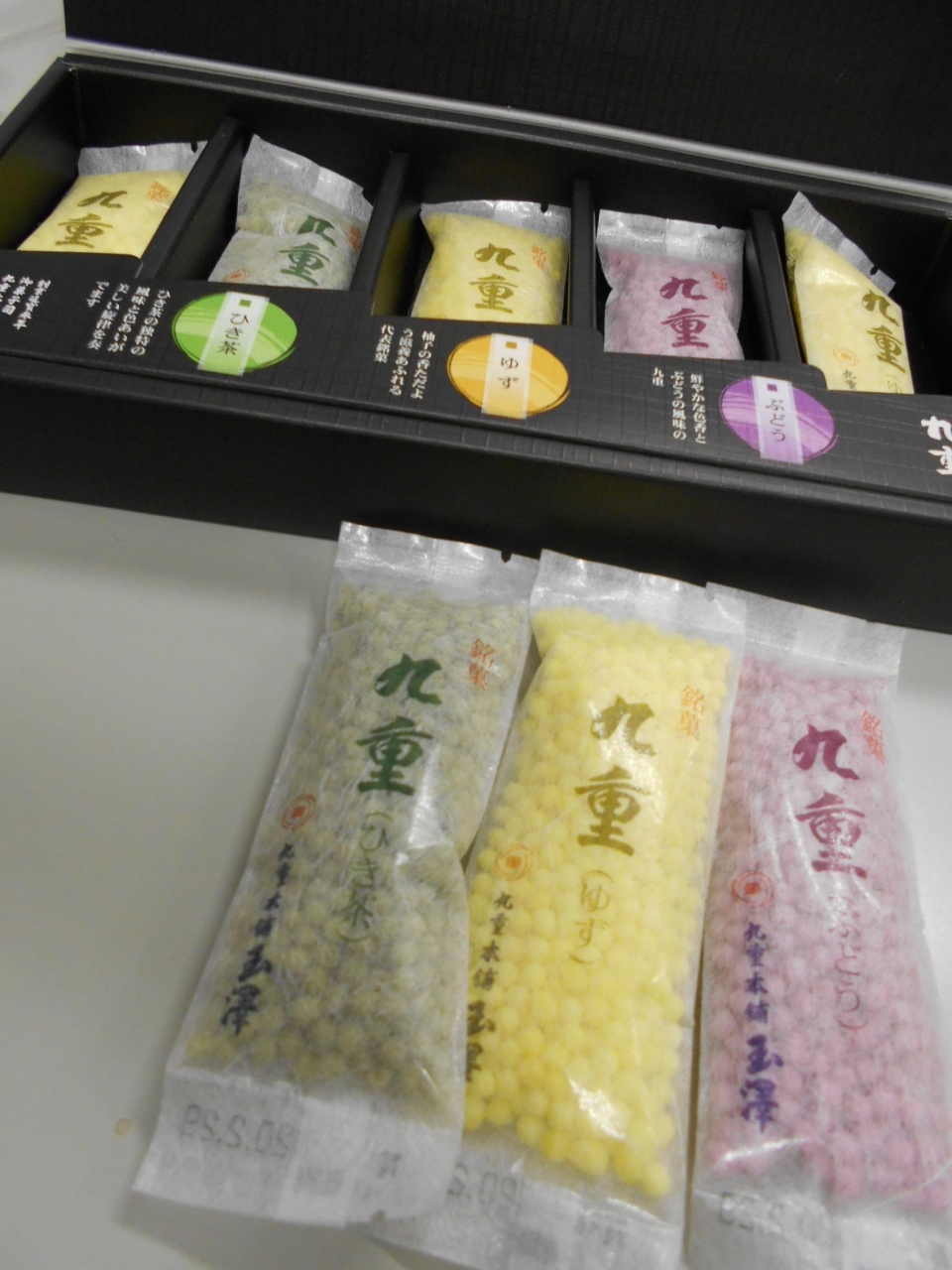 「九重」は、小さな粒上のお菓子ですが、お湯やミルクなどの液体に入れていただく銘菓です。