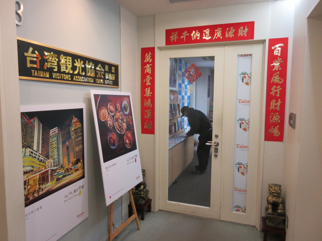 新橋駅から400mほど、外堀通りに面して建つ川手ビル3階にあります。事務所内には観光局が併設されていて、台湾各地の観光スポットに関するパンフレットや資料が用意されています。わずかですが工芸品も展示され、日本語で書かれた台湾に関する雑誌類も見ることができます。事務所近くにある、ある旅行会社を訪れた際に紹介された事務所でしたが、台湾を訪れる前に行くと、役立つ資料を手に入れることができます。