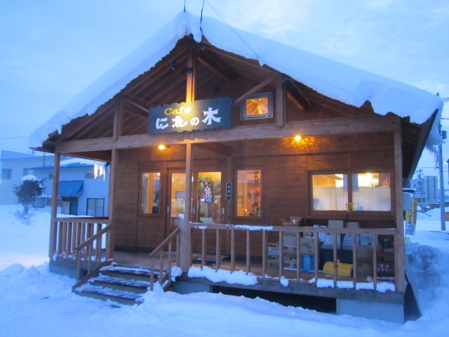このお店は、かつては和寒町市街地の大通沿い(国道より一本西側)に立地していましたが、その場所に高齢者用の公営住宅が建てられることになって移転し、現在は国道40号沿いに平屋建てのログハウス風店舗にて営業しています。