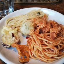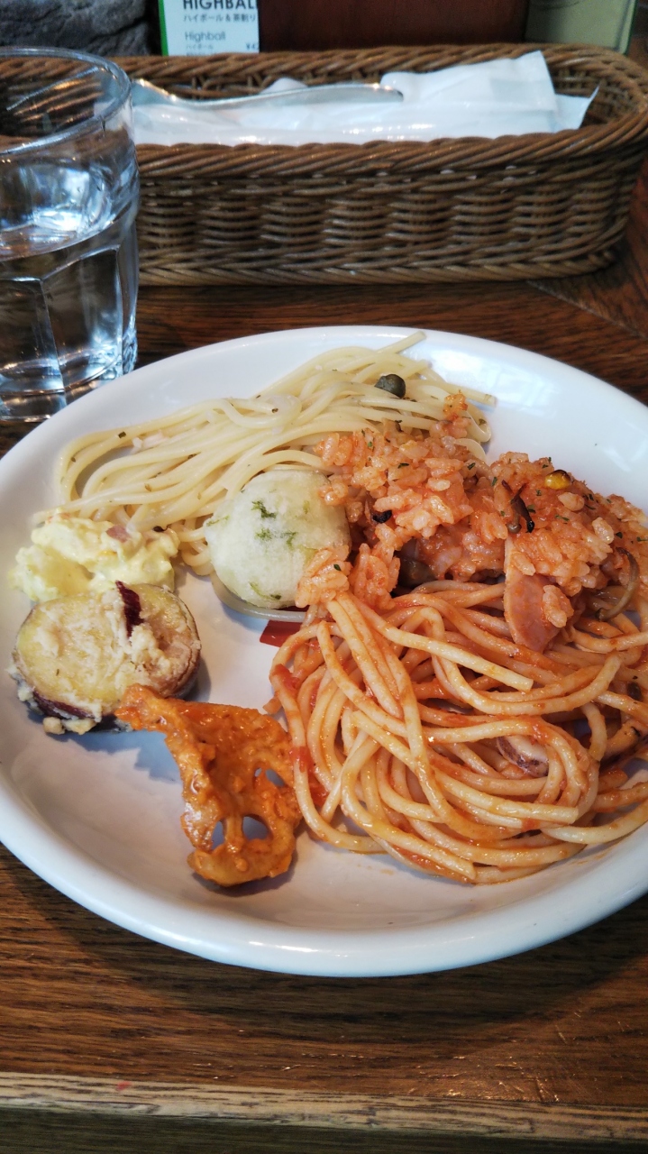 並んでいる料理は温・冷サラダ、パスタ、ピザやデザートで、ドリンクバーは追加料金200円。時間制限は無いようです。