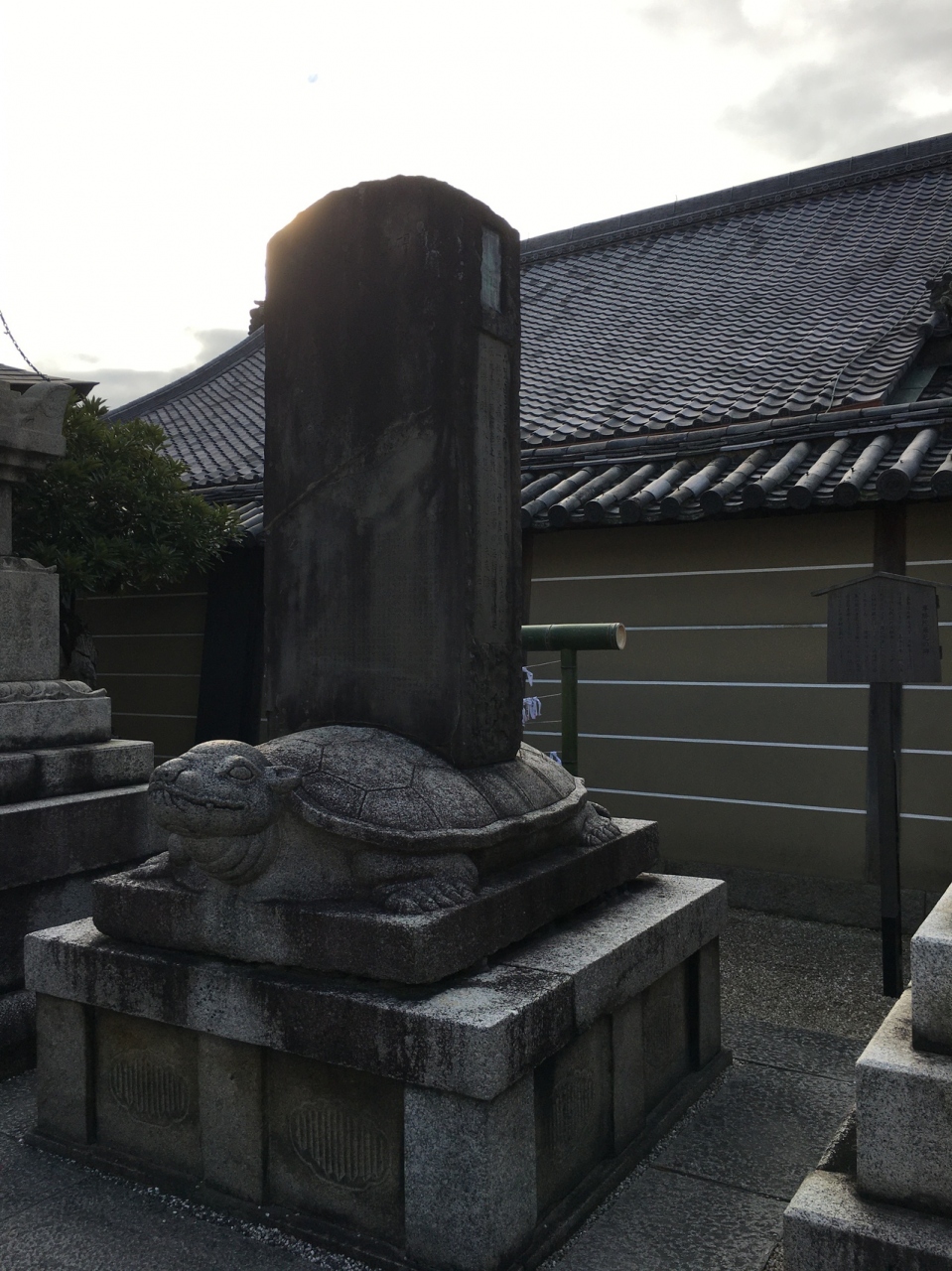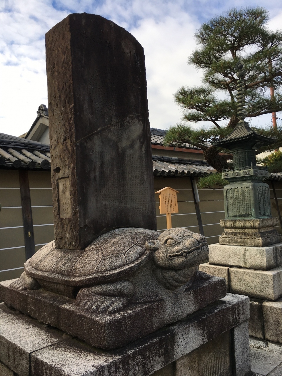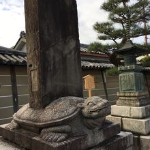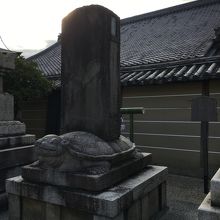 亀の甲羅の上に長方形の石碑がのり、細かい文字か書かれていました。亀の顔は牛みたいな顔でした。亀の頭や手足などを撫でて、撫でた手で患部をさすると万病に効くらしです。亀は石の台座の上にのっていて今にも歩き出しそうな感じでした。
