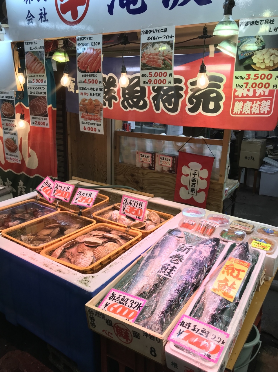 小樽駅を出て左へ1分くらい。全然立派でない階段を上ると、こじんまりとした入り口があり、そこがこの市場です。