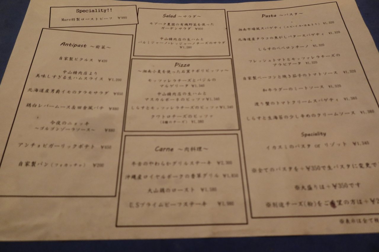 青葉台東急スクエアの裏側にあるイタリアンレストランです。お店は入口前にベランダ席があり、うなぎの寝床の様に奥行きな長く右手にカウンター左手にテーブルがあります。頂いたのはローストビーフ、ニョッキ、シラスモッツアレラピザ、渡り蟹のトマトクリームパスタなど。どの料理も値段相応に美味しく、友人とお酒を飲みながら気軽に食事のできるお店でした。