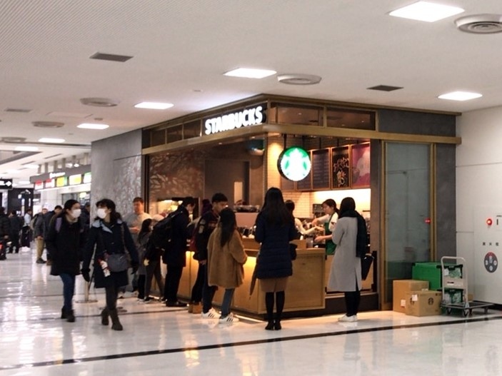 京成の電車を降りて第3ターミナルに向かう途中、偶然スタバの看板を見つけたので利用しました。スタバ専用のテーブル席、ベンチなどはなく本当にドリンク類の提供だけです。空港のソファに座って飲むか、私の場合は第3ターミナルへ歩きながらコーヒーを頂いたのでちょうど良かったです。
