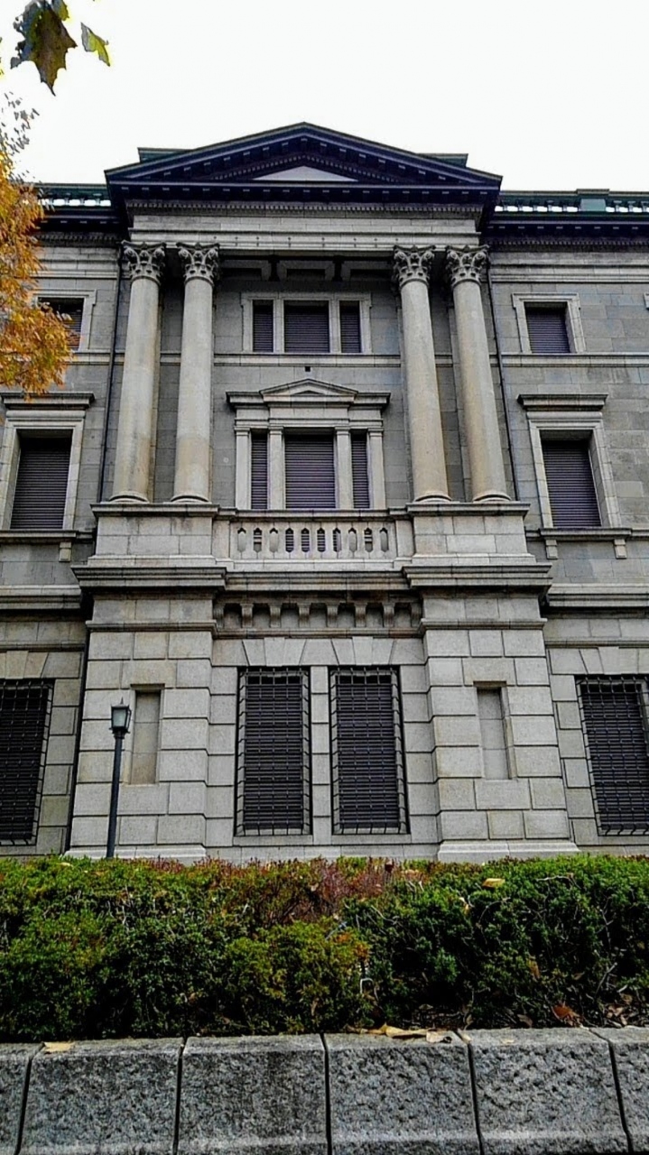 本店の建物は旧館(本館・2号館・3号館)新館、分館と3つの部分で構成されていました。旧館(本館)の設計者は建築学界の第1人者であった辰野金吾博士によるもので辰野金吾博士は東京駅や旧両国国技館などの設計も手掛けたそうです。旧館の建物は1974年2月5日に国の重要文化財に登録されました。建築様式はネオ・バロック様式にルネッサンス的意匠を加味した建築でとても美しいと感じました。