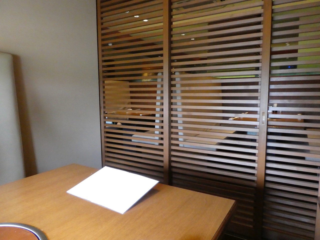 窓側席です。街中なので眺望はないですが、個室風で扉付きです。桟だけなのでお店の方の大声の談笑が聞こえてきます。個室風だとお客さんがいるのかいないのか、厨房周辺から見通せないからしかたないかも。