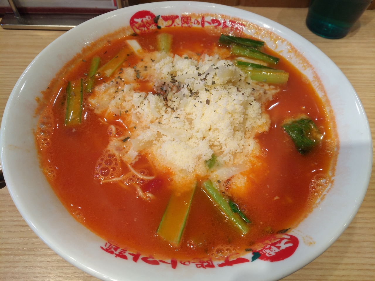 久し振りのトマトラーメンでしたが、今回もチーズラーメンを頼んでしまいました。馬鹿の一つ覚えと言われても、やっぱり好きだなぁ。細い麺がスープによく絡んで美味しいです。チーズが入ってるとイタリアン感がアップします。そして、お腹いっぱいにも関わらず注文してしまうリゾット用のご飯。こちらも止められません!美味しかったです。