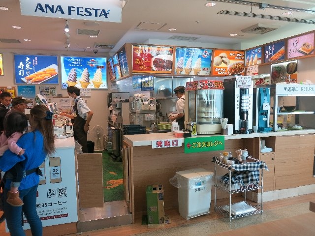 JAL側にあるブルースカイもそうですが、ロビーにある店舗では、その場で食べられるスナックフードが無いので、