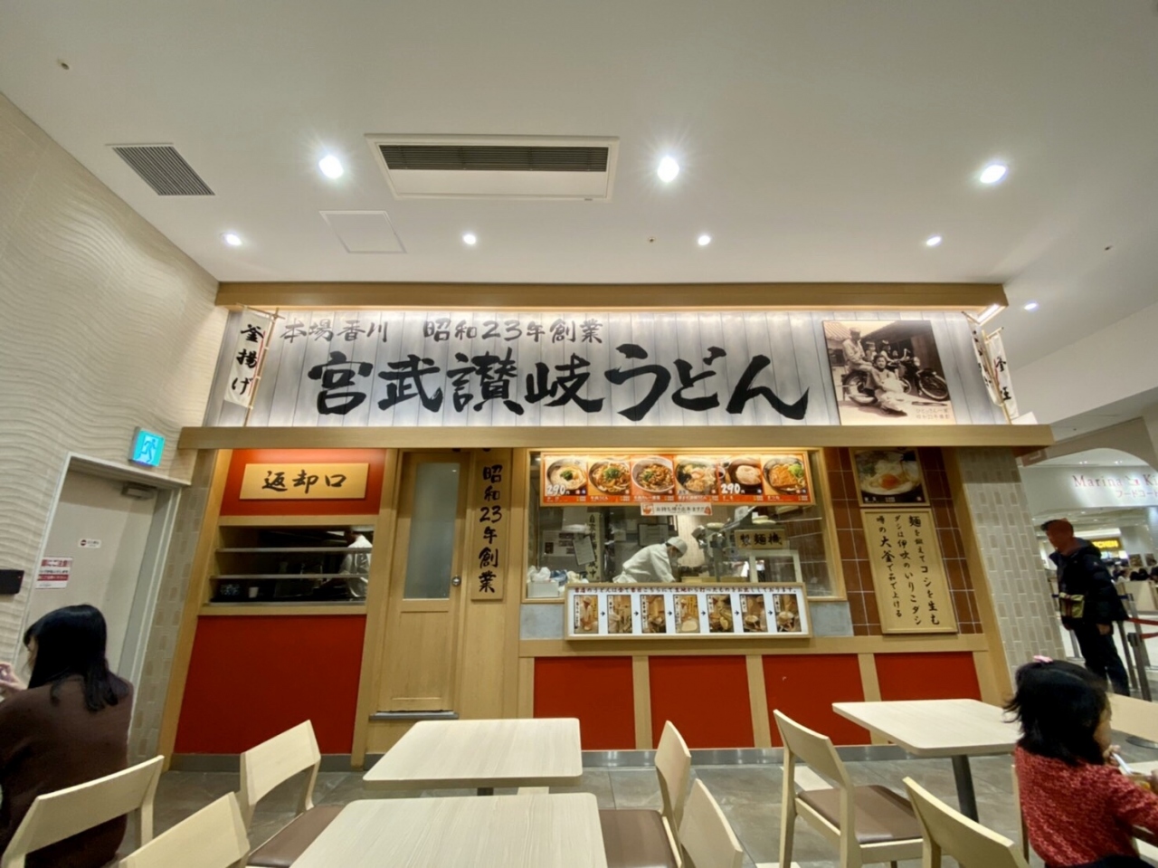 夕飯には早い時間帯でもこの時間に食べなければならない状況下で、思いついたのがフードコートの宮武讃岐うどんでした。早い、安い、おいしい。うどんを駆け込み次の目的地へ移動。ついでに買ったおにぎりはお持ち帰りで、深夜にいただきました。時間が経っていてもコンビニのおにぎりよりおいしかったです。
