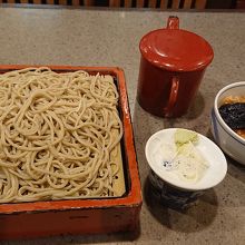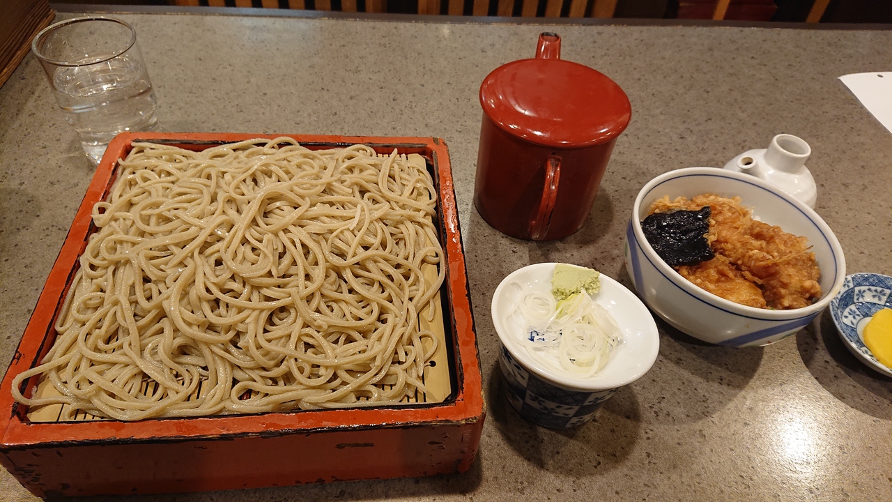 丸井今井札幌本店一条館地下1階にある蕎麦店。釧路にある創業140年の蕎麦の名店である竹老園から分家したお店で、札幌市内に数店舗あるうちの一店。デパートの中なので入りやすい。店内には蕎麦を練るところがあり、蕎麦への期待が広がる。小天丼とざる蕎麦がセットになった「つる」の蕎麦大盛を注文。蕎麦は、練り以外は機械で行う更科か、55円増の二八蕎麦の手打ちを選べるので、今回は手打ちをオーダー。蕎麦は手打ちだけあって、長さはないものの、歯応え豊かな蕎麦にほのかな香りがあり美味。つけ汁があまり甘くないのもよい。天丼は普通でしたが、からっと揚がっているので、天ざるならちょうどよいかと。カウンター席とテーブル席があり、昼時は結構混雑する。
