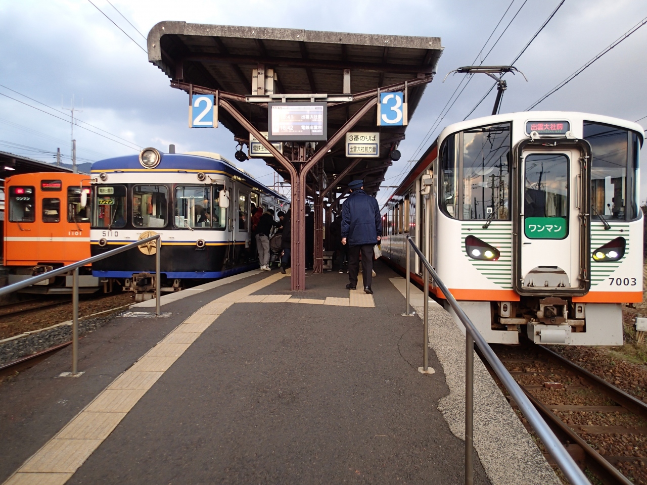 出雲大社と宍道湖松江、出雲市中心を結ぶ地元電鉄会社で、映画『RAILWAYS 49歳で電車の運転士になった男の物語』の舞台にもなりました。