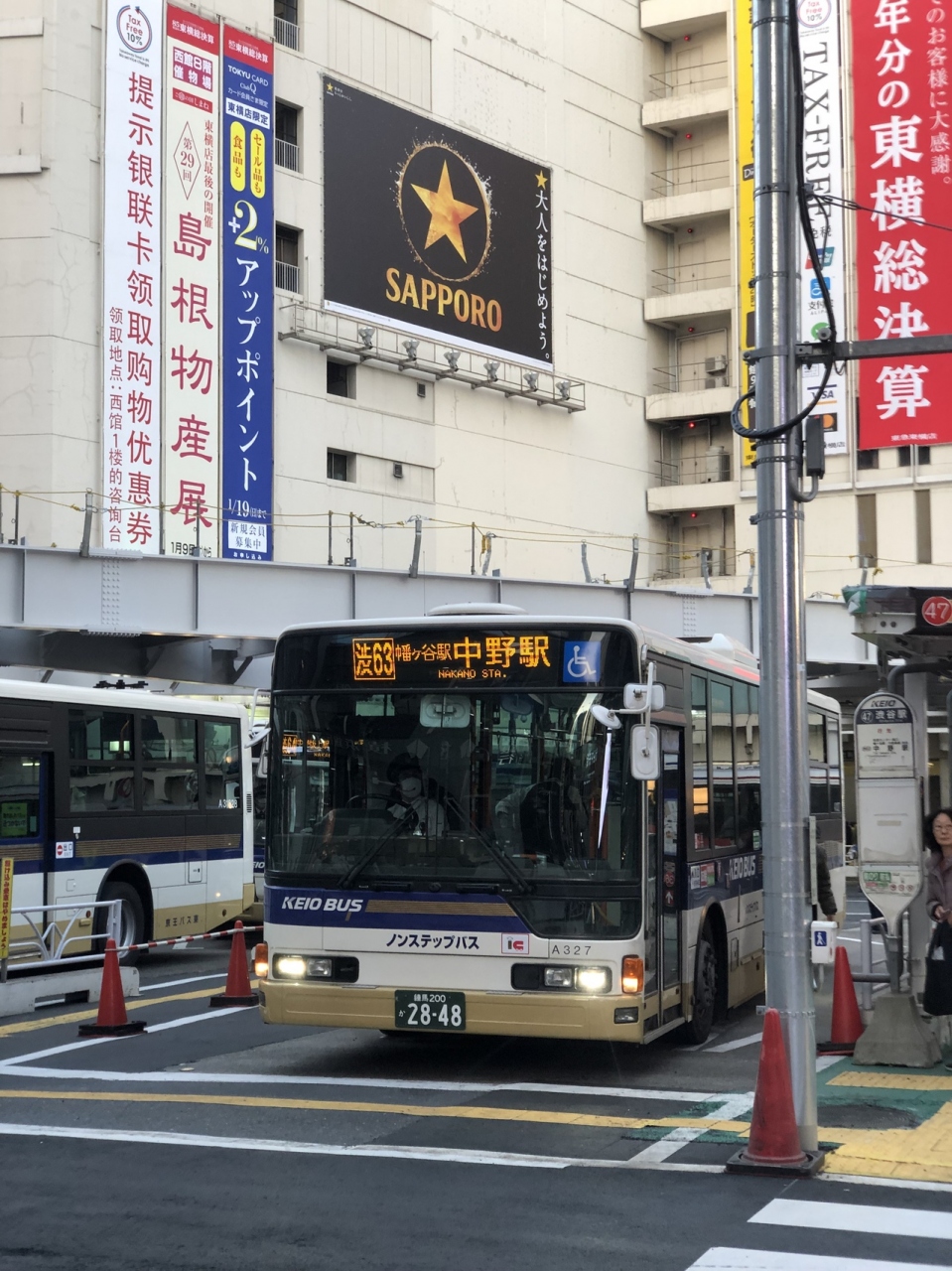 渋谷から中野行のバスに乗って幡ヶ谷で下車しました。渋谷から幡ヶ谷まで、電車だと乗り換えが必要になります。階段を登ったり下りたり、疲れているときは特に面倒です。その点バスは乗ったら、そのまま座っているだけ。やはりバスは楽ですね。まあ座れることが前提ですが。渋谷発着は東急バスが圧倒的ですが、京王バスも発着しています。車両もきれいだし、この日乗車したのはノンステップバスでした。途中、渋滞っぽいところもあり少々時間を要しましたが、運転も丁寧で快適な社内でした。