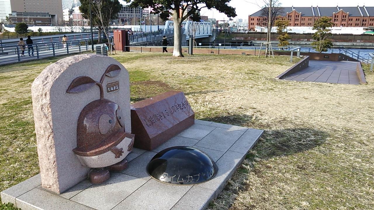 横浜開港150周年のイベント「開国博Y150」のマスコットキャラで、象の鼻パークが整備された時に記念碑を作ったとのこと。
