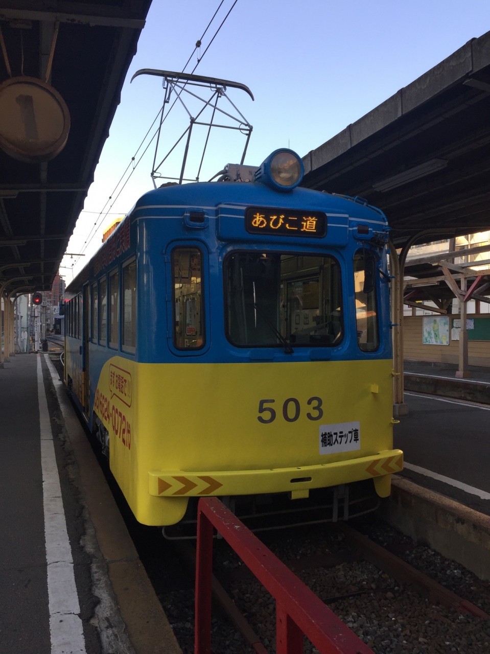 残念ながら運転本数はあまり多くありませんが、地元の人たちの足として活躍しているようです。恵美須町駅が100メートル移動するということで工事中でした。