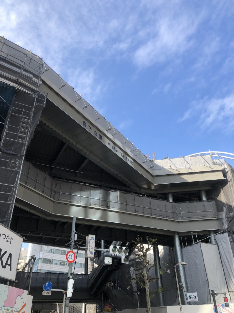 渋谷の宮下公園は明治通りに並行した駐車場の上にあって、山手線からも見渡せる横に長い公園です。で、先日通りかかったら大規模改修を行っていました。完成は2020年3月とかで間もなくですが、まだ途中ではるものの、だいぶ出来ている様子で、見た感じかなり近代的な様相でした。以前の開放的でどこか昭和な雰囲気のあった公園とは違うようですね。いずれにしてもどんな公園が出来るのか楽しいですが。