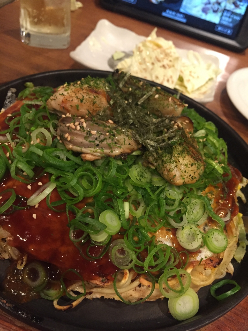 広島焼きには、大きな牡蠣が4つのっていて、美味しかったです。