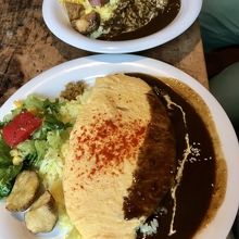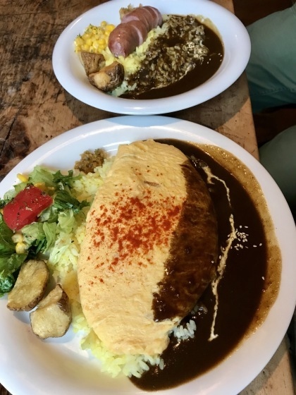 木と緑に包まれた雰囲気、こってり濃厚カレー、