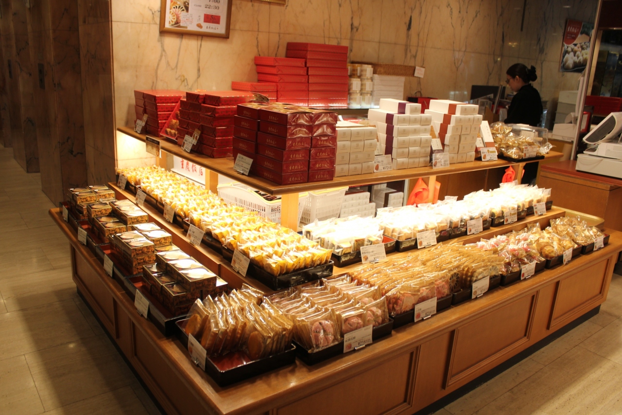 重慶飯店の中華菓子を一通り揃えていますが、売場が狭くて店員が1人のため、会計に待つことがあります。
