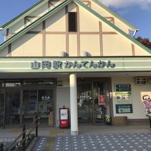 山岡駅かんてんかんは、かんてん資料館・寒天カフェレストランと列車の待合室が併設された建物。