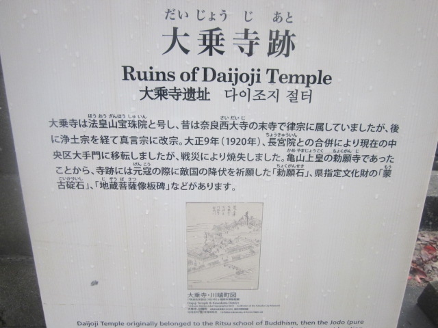 戦災によりお寺自体は焼失しまったそうですが、ここに残されている石碑は、鎌倉時代の元寇の際に、敵軍の降伏を祈願したという、亀山上皇の勅願石や、県指定文化財ともなっている蒙古の碇石、地蔵菩薩板碑などが並んでいて、どれも七~八百年の歴史を有するという貴重な石碑なので非常に見応えがありました。