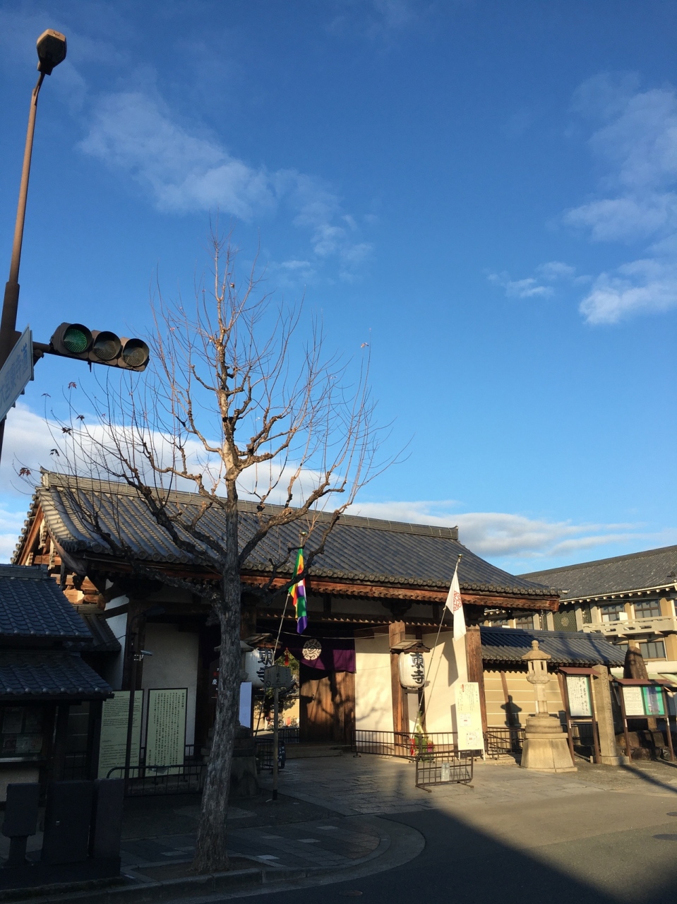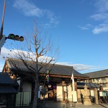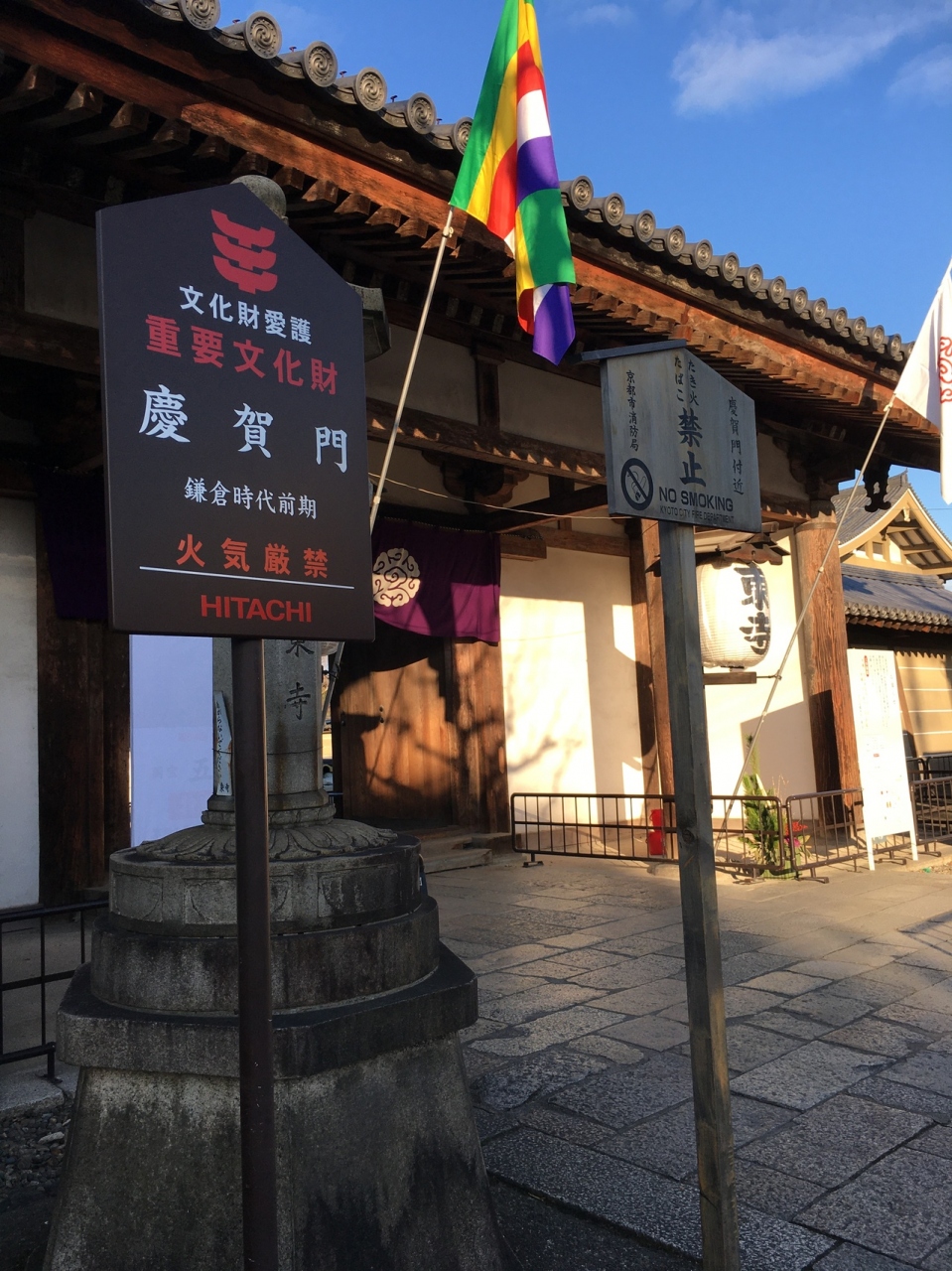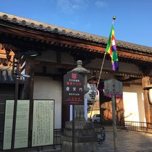 重要文化財で鎌倉時代前期の門で、京都駅から行くと最初の門でした。横長の門で門の左右には提灯があり、東寺と書かれていました。縦長の灯篭が左右にはあり古めかしかったです。門の表側は説明看板、提灯等ありましたが、裏側の境内側は何もなくシンプルでした。